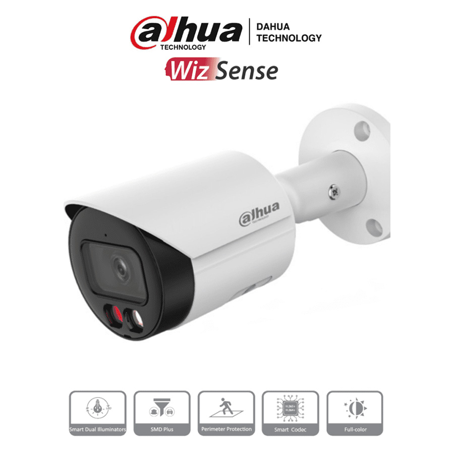 DAHUA IPC-HFW2249S-S-IL – Camara Bullet IP 2 Megapixeles/ Iluminador Dual Inteligente+Full Color/ WizSense/ Lente de 2.8mm/ 107 Grados/ Micrófono Integrado/ 30 Mts de IR y Luz Visible/ Metálica/ Ranura MicroSD/ WDR 120dB/ SMD Plus/ POE