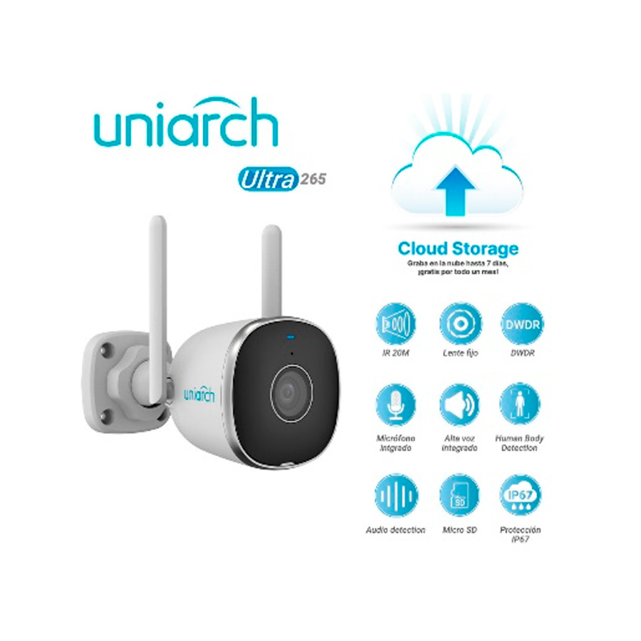 La cámara Uho-B2R-M2F(3)4 de Uniarch combina tecnología avanzada y diseño práctico para ofrecer una solución confiable en videovigilancia exterior. Con una resolución HD de 2 MP y un sensor CMOS de 1/3″, esta cámara garantiza imágenes nítidas y de alta calidad incluso en condiciones de poca luz, gracias a su apertura F1.6 y a la tecnología Smart IR que alcanza hasta 20 metros.